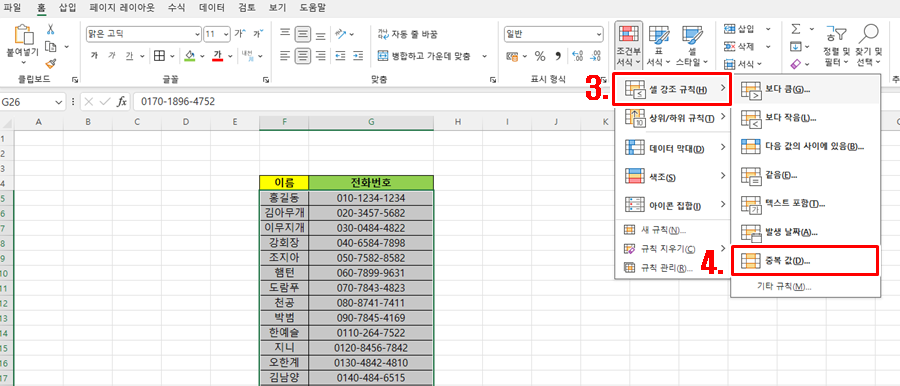 엑셀 관리를 하다 보면 동일한 문구가 기입되어 있거나 숫자 즉 전화번호와 같은 내용들도 중복으로 되어있어서 발송되는 것 때문에 민원이 들어오는 경우도 있겠죠? 이러한 이유들로 중복된 것을 찾아야 하는데요. 일일이 찾아 확인하기엔 불필요한 시간이 너무 많이 소요되는 경우가 있습니다. 그래서 오늘 제가 엑셀 중복값 찾기 1분 해결법으로 아주 쉽고 간단하게 할 수 있는 방법을 설명드리겠습니다.