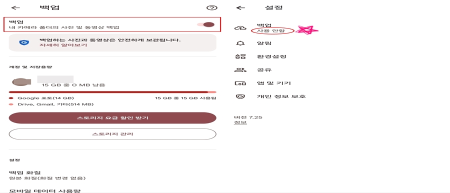 갤럭시 / 갤럭시 탭 / 아이폰 / 아이패드 기기에서 구글 사진 동기화 해제하기