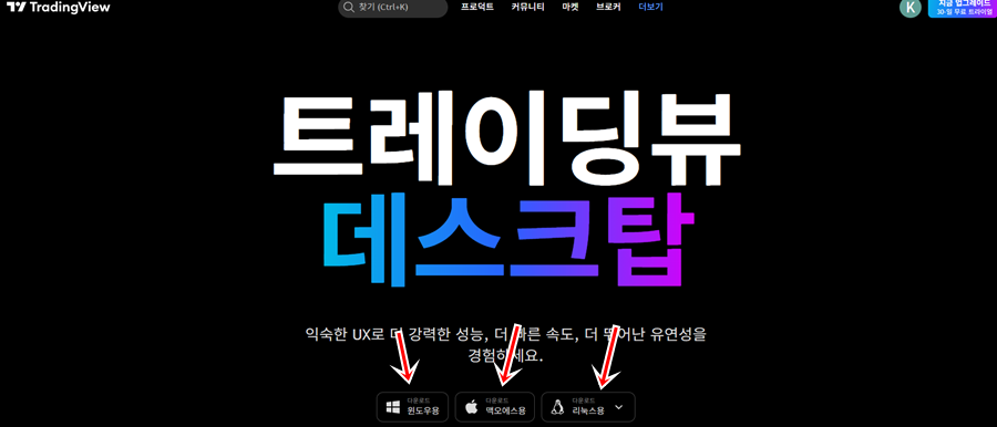 인터넷 검색사이트에서 "트레이딩뷰" 검색하시면 메인 홈페이지 확인가능합니다. 클릭 또는 터치해주세요.