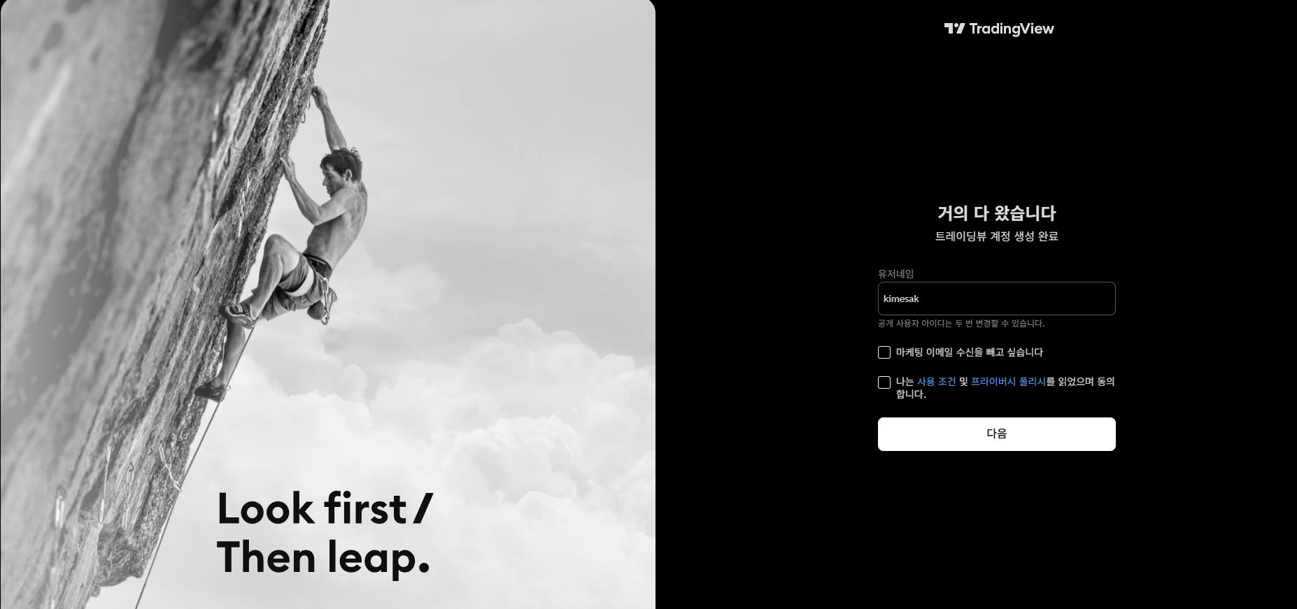 이제 하단에 네모난 체크박스를 읽어 보신 후 체크하고 "다음"을 클릭하거나 터치해주세요.